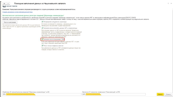 Генерация временных кодов XTIN перенесена из отдельного шага помощника на этап автоматического заполнения данных регистра сведений Штрихкоды номенклатуры и выполняется при включенной настройке Автоматически запрашивать XTIN.