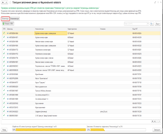 На этапе проверки заполнения временных кодов XTIN добавлена возможность просмотра списка штрихкодов и номенклатуры, для которых в информационной базе указан временный код.